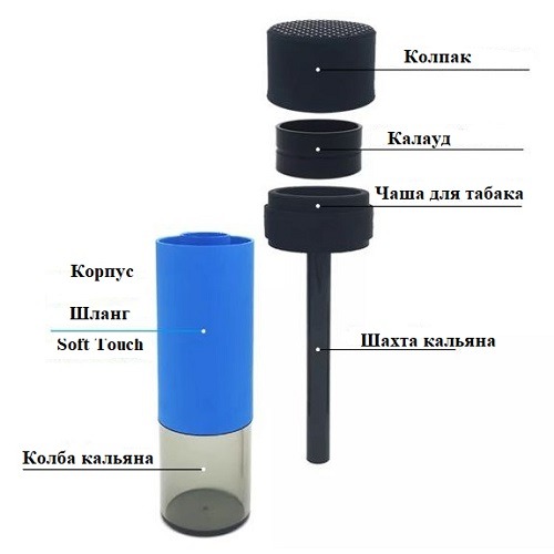 Ця модель поєднує практичність, мобільність та естетику — кальян має привабливий синій колір, якісні матеріали та просту конструкцію.
