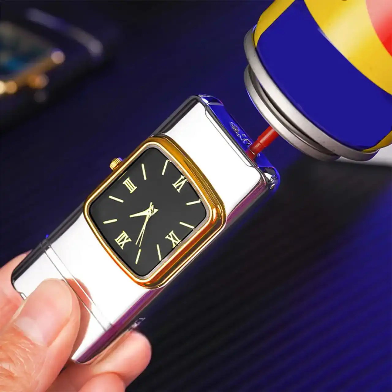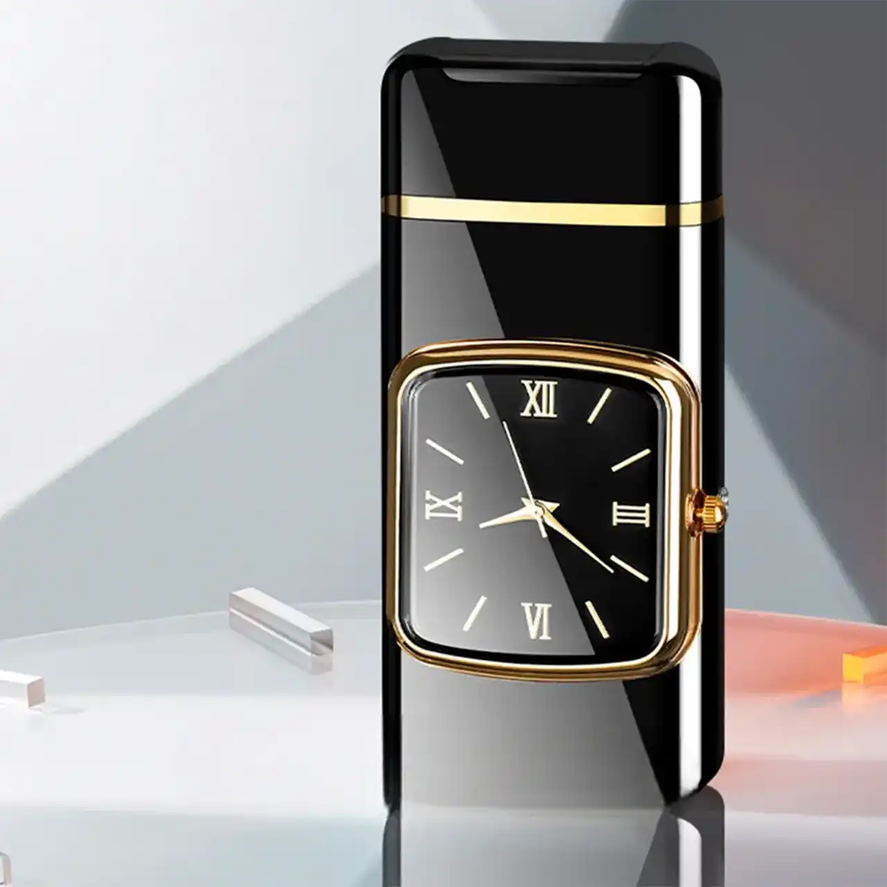 Газова запальничка з годинником A33767B — це унікальний аксесуар, який поєднує **сучасну турбінну запальничку** та **елегантний годинник** у корпусі.