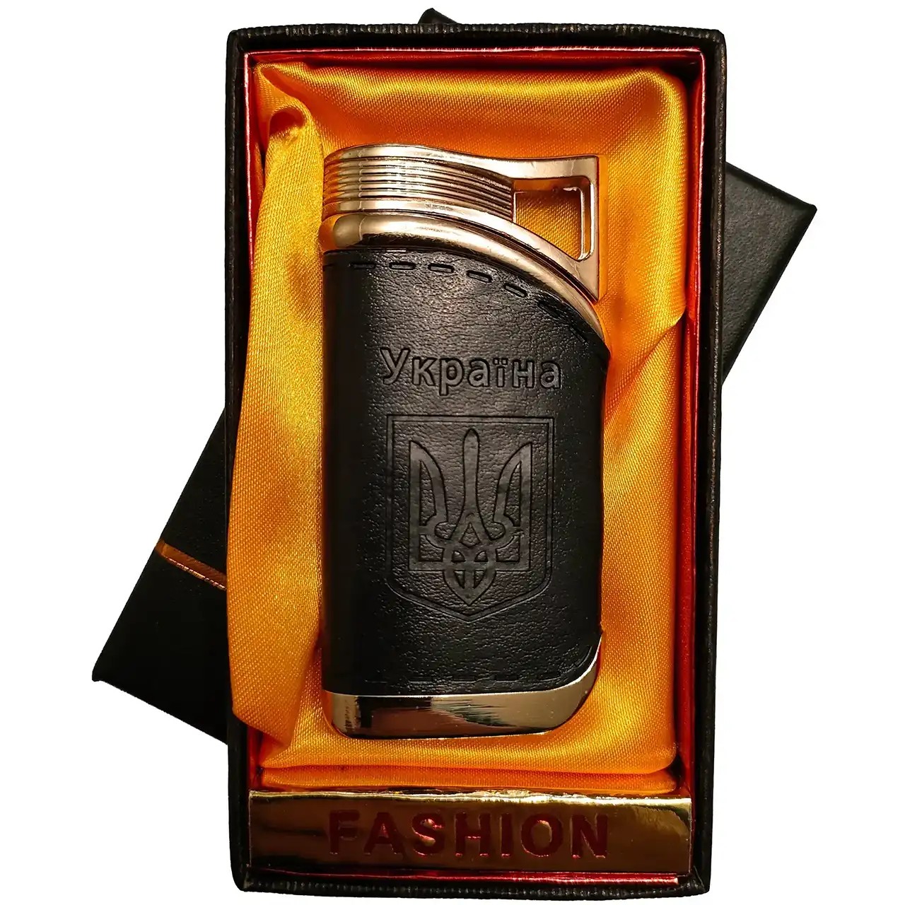 Корпус прикрашений гербом України, що надає виробу патріотичного характеру та робить його привабливим сувеніром. Запальничка багаторазова та призначена для дозаправки газом. Постачається у подарунковій коробці, завдяки чому готова до вручення без додаткового пакування.