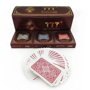 Покерні карти 408-35 «777» створені для поціновувачів якісних і довговічних аксесуарів. Колода виготовлена зі 100% пластику, що забезпечує високу гнучкість, стійкість до подряпин, вологи та зношування навіть за інтенсивного використання.