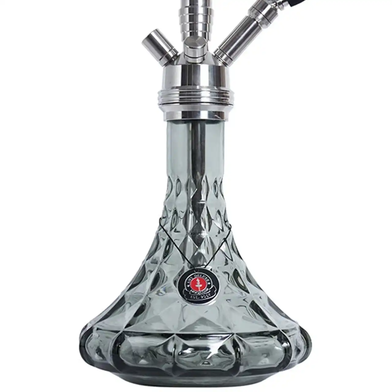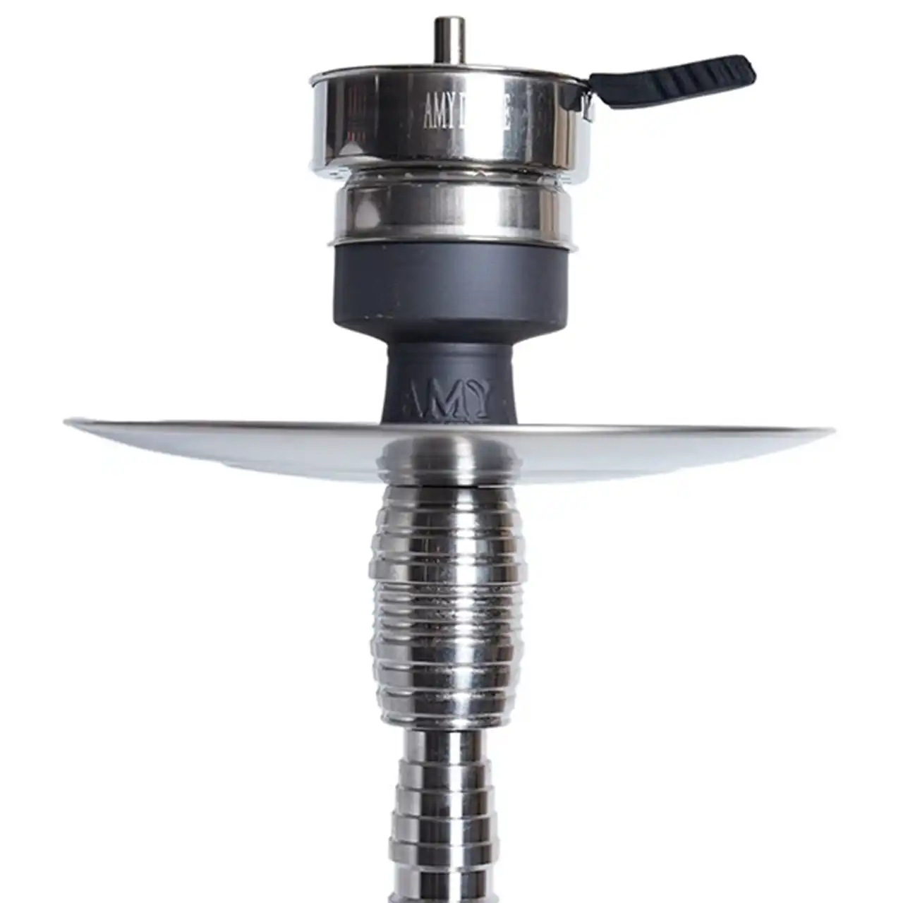 Кальян Amy Deluxe SS 20.01 BK — висота 70 см, нержавіюча сталь, 2 порти, чорна узорчата колба 2 л. Клік-система, дифузор і меласоуловлювач.