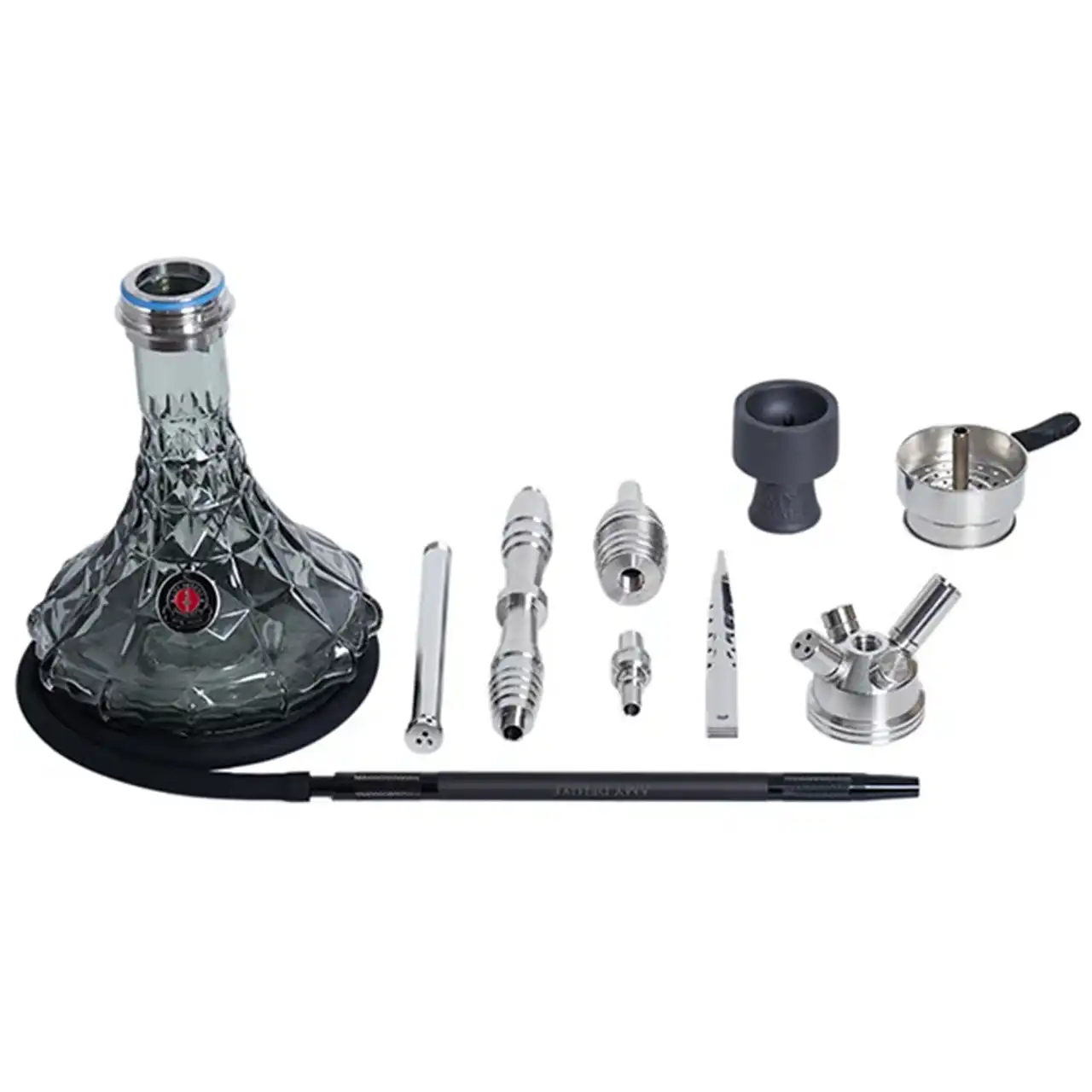 Кальян комплектується силіконовим шлангом із алюмінієвим мундштуком, що не вбирає запахи й легко очищується. Завдяки сучасному дизайну та міцним матеріалам ця модель стане не лише функціональним інструментом, а й стильним елементом інтер’єру.