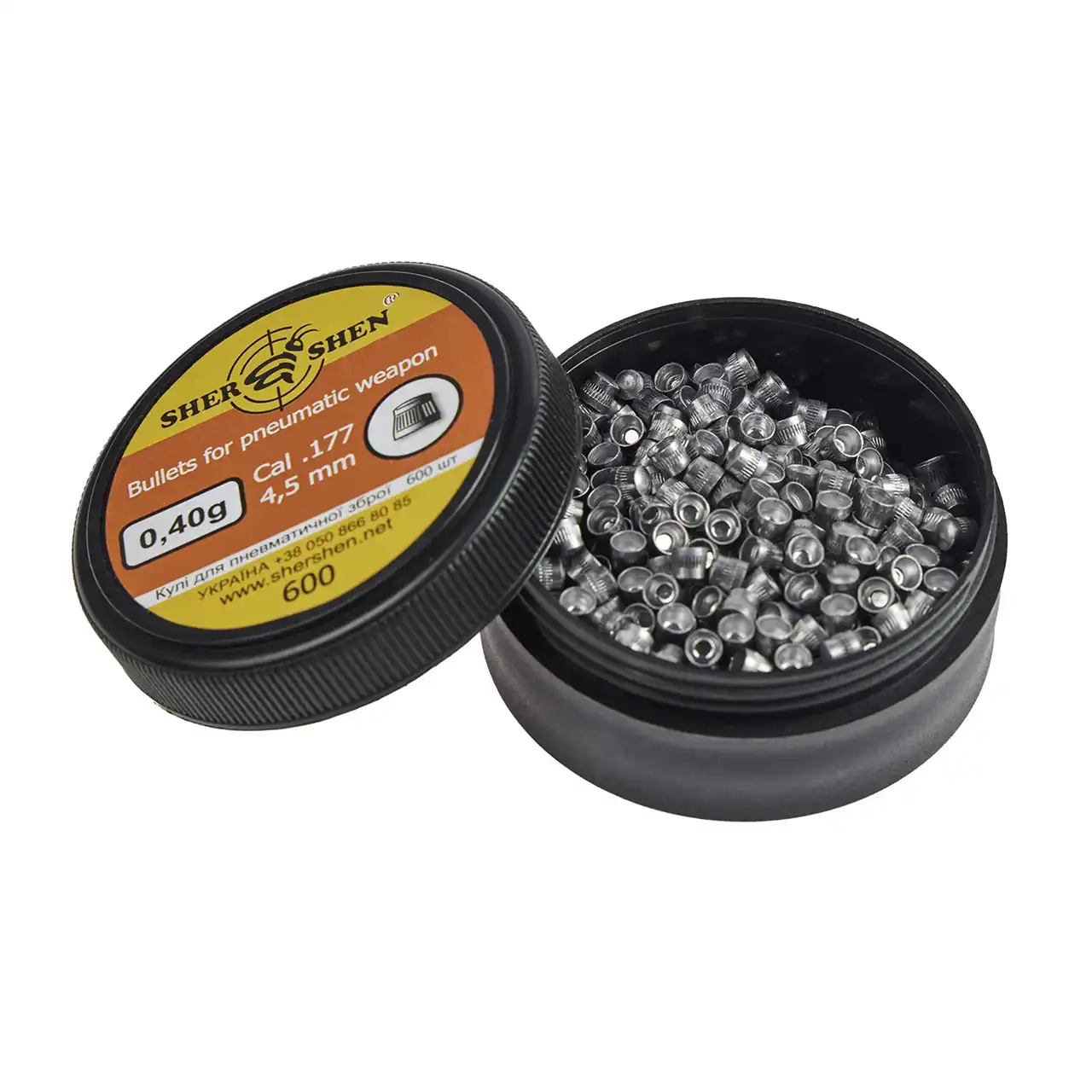 Кулі «Шершень» 0,40 г (4,5 мм) — це порожнисті конічні свинцеві кульки (ковпачкового типу) з опуклим дном, виготовлені методом штампування. Завдяки подовженій носовій частині та більшому діаметру головної частини маса частково зміщена вперед, що забезпечує кращі балістичні характеристики у порівнянні з легшими кулями (наприклад, DS-0,28 г): менший ризик перекосу в каналі ствола та стабільніша траєкторія.