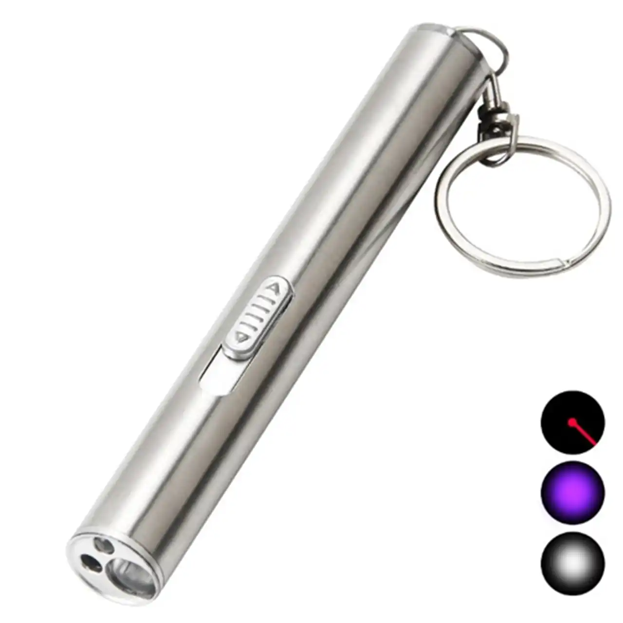 Світлодіод забезпечує яскраве біле світло, UV-режим допомагає перевіряти купюри чи поверхні, а **лазер** стане у пригоді для розваг або презентацій.