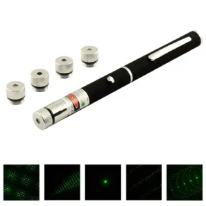 Лазерний ліхтар-покажчик 803-5 з 5 насадками та живленням від батарейок типу AAA – потужний прилад, що забезпечує яскраве та чітке освітлення зеленого лазера для різних цілей. Він має додаткові насадки, що дають змогу змінювати форму зображення при повороті насадок. Лазерний ліхтар має робочий діапазон температури від 15 до 30 градусів та забезпечує точність вимірювання довжиною хвилі 532 нм. У комплект із лазерним ліхтарем входять дві батареї типу ААА та коробка. Крім того, корпус прогумування забезпечує зручне та безпечне використання.