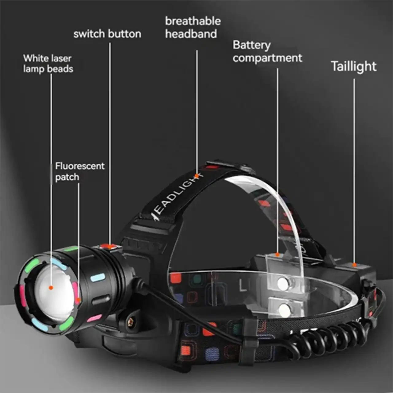 Оснащений потужним TG-діодом, флуоресцентним корпусом, який світиться у темряві, та зручним регульованим нахилом голови.