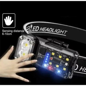 Налобний ліхтар X52-2LED+6SMD з білим та RGB-світлом (червоний, зелений, синій), сенсором руху та зарядкою Type-C. Оснащений двома LED-діодами для спрямованого світла та шістьма SMD-діодами для кольорового освітлення. Працює від Li-Ion акумулятора.