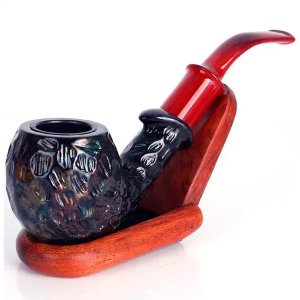 Люлька HL-733 — стильна курильна трубка з сучасним дизайном, фактурною чашею та яскравим червоним мундштуком. Комплектується дерев’яною підставкою для зручного зберігання.
