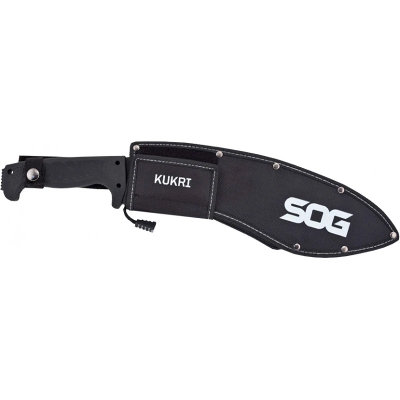 Мачете SOG SOGfari Kukri Machete (1258.02.46) - багатофункціональний інструмент для любителів бушкрафту. Клинок традиційної форми виконаний із нержавіючої сталі марки 3CR13 із захисним пудровим покриттям чорного кольору та має обух у вигляді пили. Рукоятка виконана з термопластичного еластомеру Kraton з яскраво вираженою підпальцевою виїмкою і гардою, що перешкоджає сповзанню руки на край інструменту. Рукоятка оснащена склобоєм і має отвір для темляка. Мачете SOG SOGfari Kukri Machete комплектується чохлом із зносостійкого нейлону.
