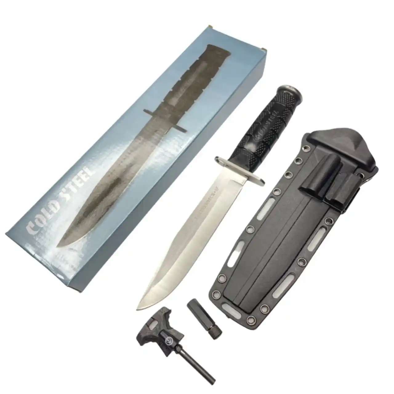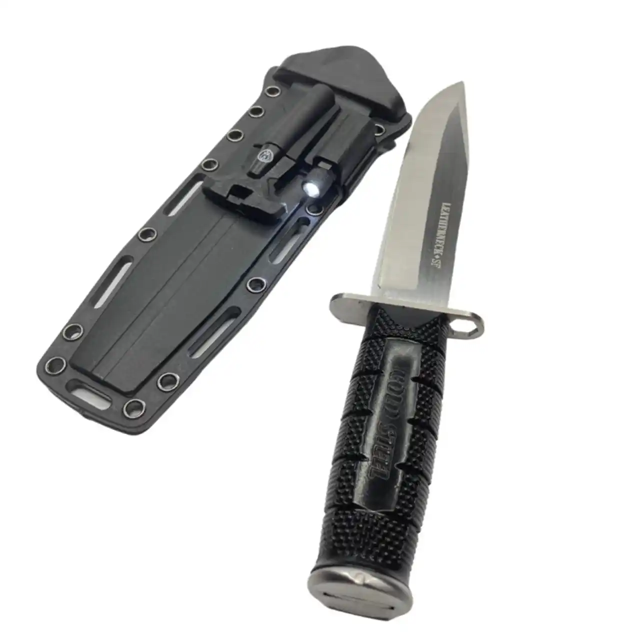 Для того, щоб утримати пальці від ковзання вперед ніж Leathernecks має гарду, виготовлену з товстої сталі, яка повернена трохи вперед, щоб забезпечити чудовий захист для вашої руки, пропонуючи мінімальне втручання у використанні цих ножів при виконанні завдань. Ручки виготовлені з глибоко висіченої картатої Kray-Ex™, яка пропонує неперевершену силу захоплення долонею овального поперечного перерізу та унікального жолоба під палець. Ручка Leatherneck закінчується товстим сталевим навершием, тому ножем також можуть наноситися страшні удари або у разі надзвичайної ситуації наверш може бути використаний як молоток. Перевезти ножі безпечно та зручно можна з міцним та універсальним Secure-Ex чохлом у комплекті з повністю знімною та симетричною ремінною петлею на яких є кресало та ліхтарик.