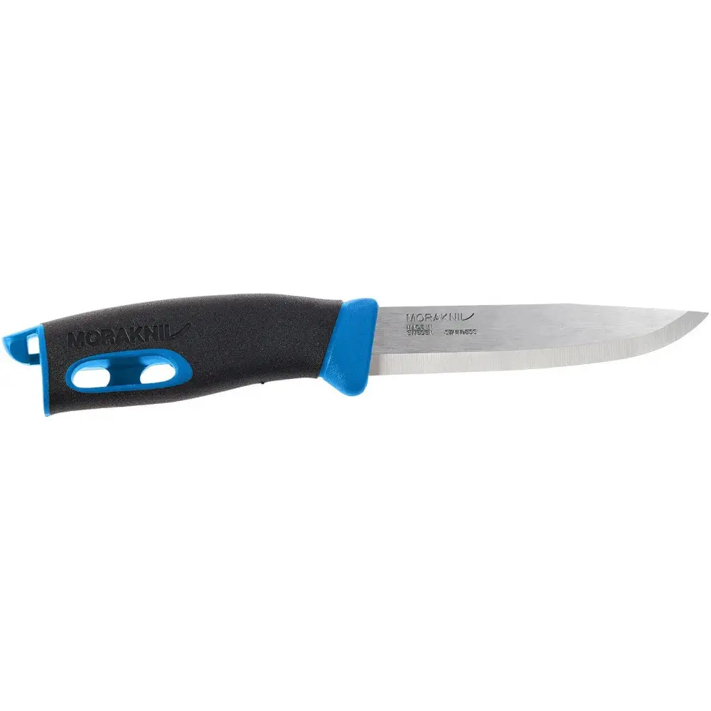 Ніж Morakniv Companion Spark Blue (2305.02.07). Заснований на вдалій та відомій моделі Companion, ніж Morakniv Spark розроблявся як надійний помічник у будь-яких умовах. Масивний меч виготовлений з нержавіючої сталі високими показниками утримання заточування. Рукоятка з гуми ТРЕ не ковзає в долоні. У торці рукояті заховано знімне кресало. Темляк кріпиться до отвору якраз в огниві, таким чином, при розпалюванні багаття ви не втратите такого важливого інструменту. Вилучення кресала для роботи та повернення його в рукоятку не викличе труднощів.