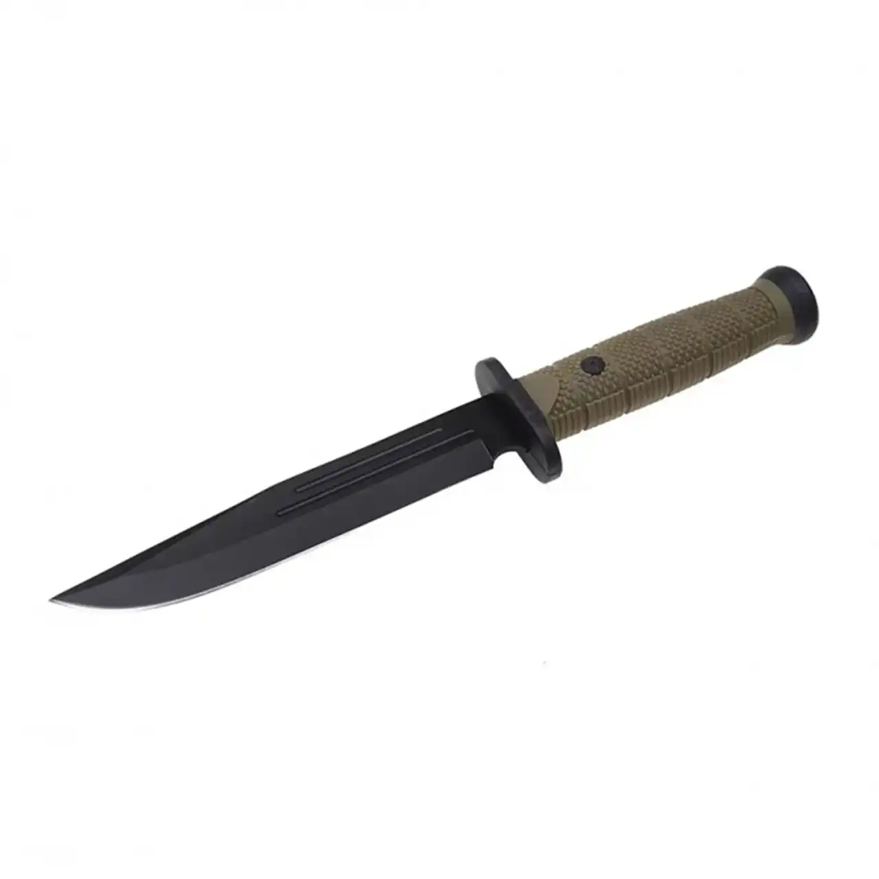 Рукоять виготовлена з міцного пластику, зручна для тривалого використання, не ковзає у руці. У комплект входять пластикові піхви, що дозволяють безпечно транспортувати ніж.