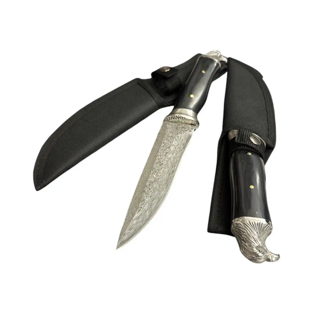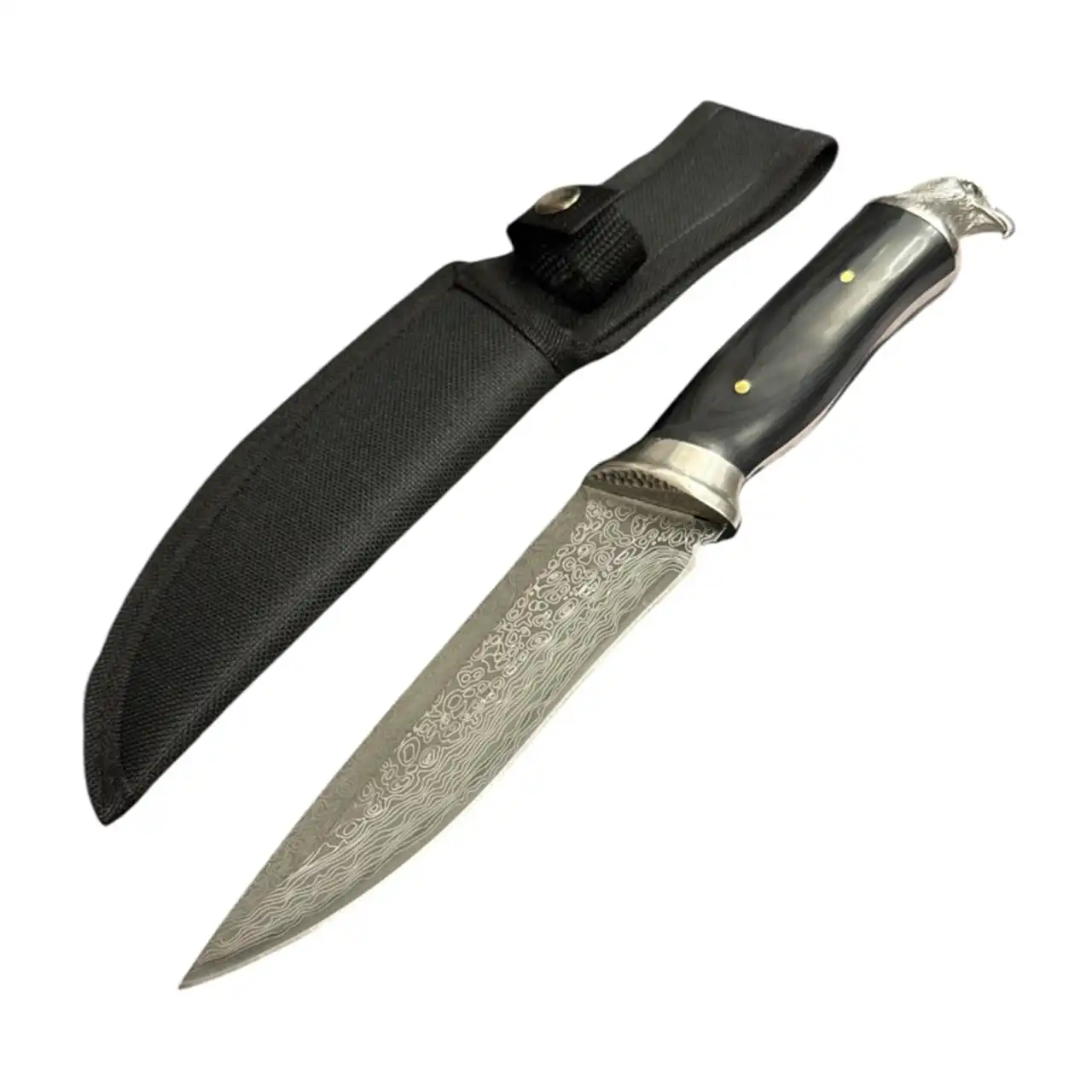 Клинок довжиною 14,5 см, шириною 4,2 см і товщиною 4 мм виготовлений зі сталі з дамаським узором. Такий матеріал вирізняється високою зносостійкістю та стійкістю до корозії, а стильний візерунок надає ножу особливого характеру.