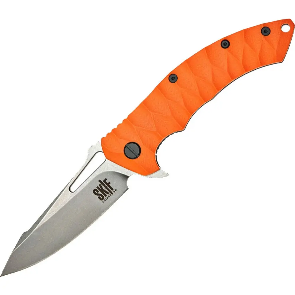 Ніж SKIF Shark II SW Orange (1765.02.96) - відноситься до нового покоління однієї з найкрасивіших моделей 400 серії. Ніж вирізняється на тлі інших моделей своїм яскраво вираженим агресивним дизайном. Оригінальна форма багатофункціонального клинка, упор під великий палець, зручний фліппер, що плавно переходить у підпальцеву виїмку - візитна картка моделі Shark.