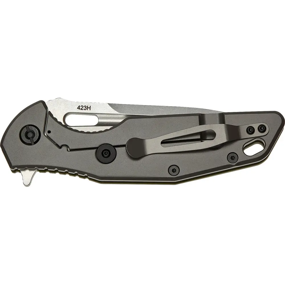 Накладка рукояті виготовлена з міцного композитного матеріалу G-10 оливкового кольору. Також варто відзначити наявність зручної односторонньої кліпси, що знімається, що дозволяє носити його навіть у кишені штанів і збільшеного темлячного отвору.