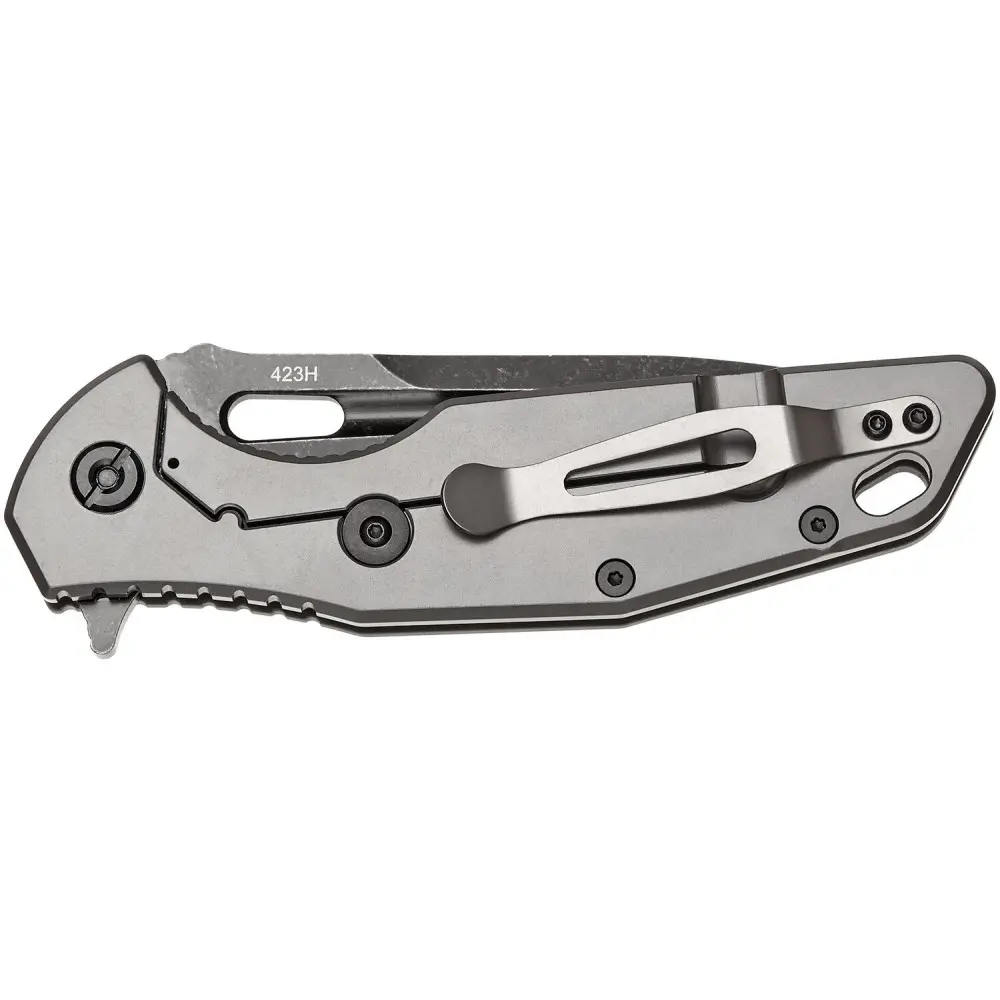 Відкривається однією рукою за допомогою підпальцевої виїмки або фліппера, а шарикопідшипник забезпечує чудово плавний хід при відкритті. Форма клинка - це поєднання Drop-Point і S-подібного клинка і має довжину 9,7 см і товщину в 3 мм з нержавіючої сталі марки 9Cr18MoV що краще, ніж у попередніх моделей, має гарну корозійну стійкість, відмінно тримає заточування і легко правиться, а також фінішну обробку Stonewash яка вбереже від незначних потертостей та подряпин при частій експлуатації.