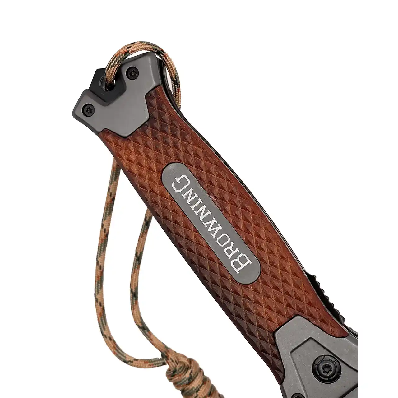 Ця модель Browning одна із найпрактичніших на ринку України. складний ніж Browning металевий з натуральними дерев'яними накладками на рукояті. Клинок виконаний із зносостійкої нержавіючої сталі 440С. Покриття ножа - титан, що підвищує стійкість до корозії, з ним меч не тьмяніє, не окислюється, підвищується зносостійкість. На ножі є кліпса для носіння на поясі. Хороше покриття, кліпса, міцний обух та дерев'яні накладки роблять цей ніж не тільки практичним, а й дуже привабливим.