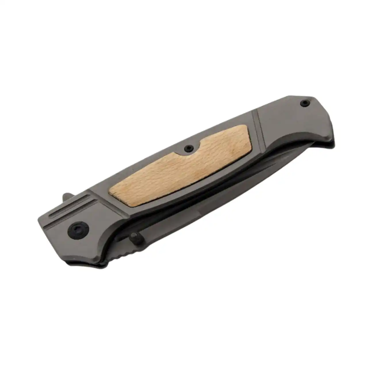 Рукоятка ножа зроблена з металу та дерева, завдяки чому ніж відмінно сидить у руці.