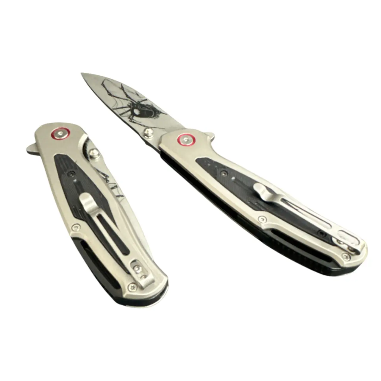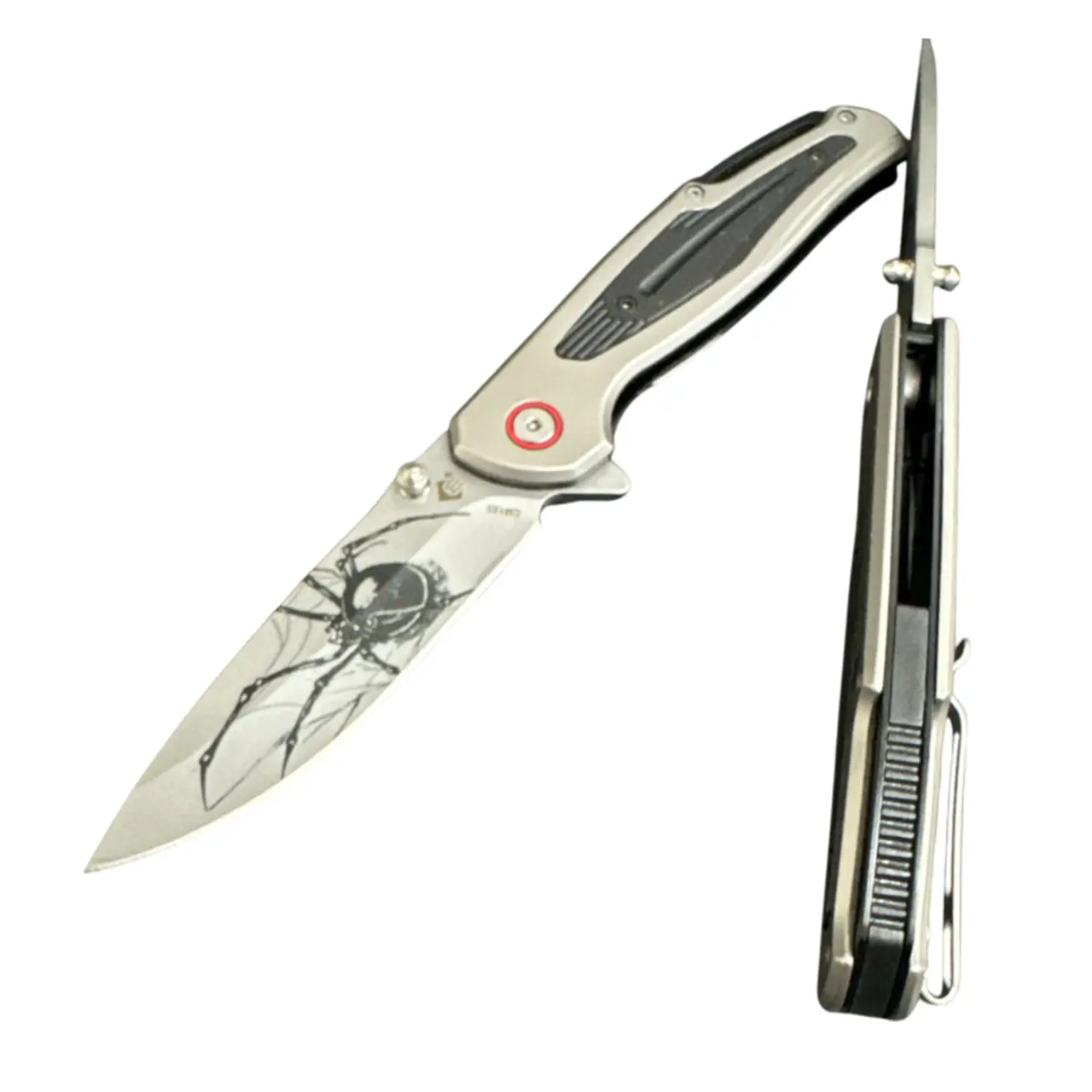 Клинок довжиною 9,2 см і товщиною 3,7 мм виконаний із нержавіючої сталі з декоративним принтом павука й павутини. Це робить ніж не лише функціональним інструментом, але й ефектним аксесуаром для колекції.