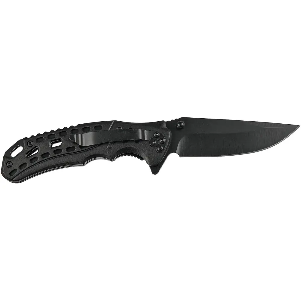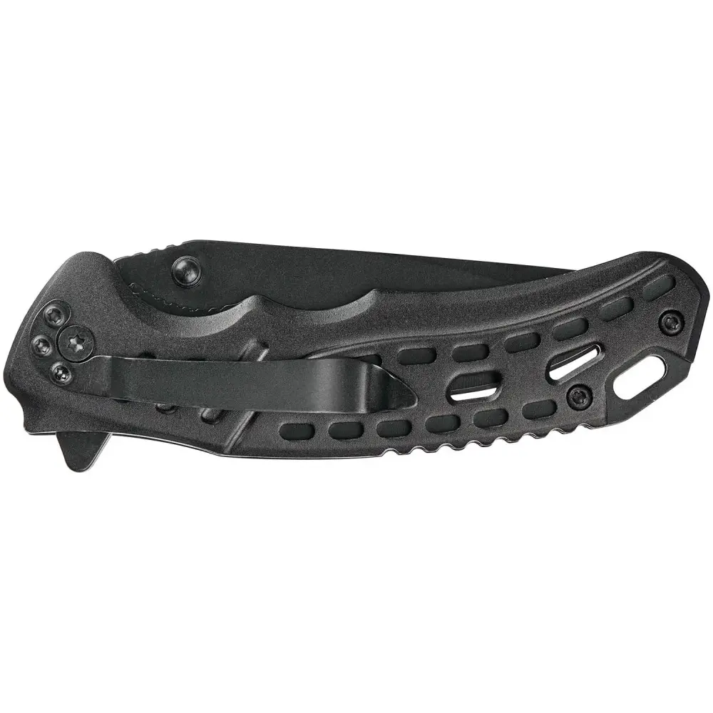 - Накладки на руків'я виконані з алюмінієвого сплаву. Є декоративні вирізи по всій площі накладок. Присутній отвір для темляка, а також сталева кліпса для перенесення ножа в положенні Tip-down.