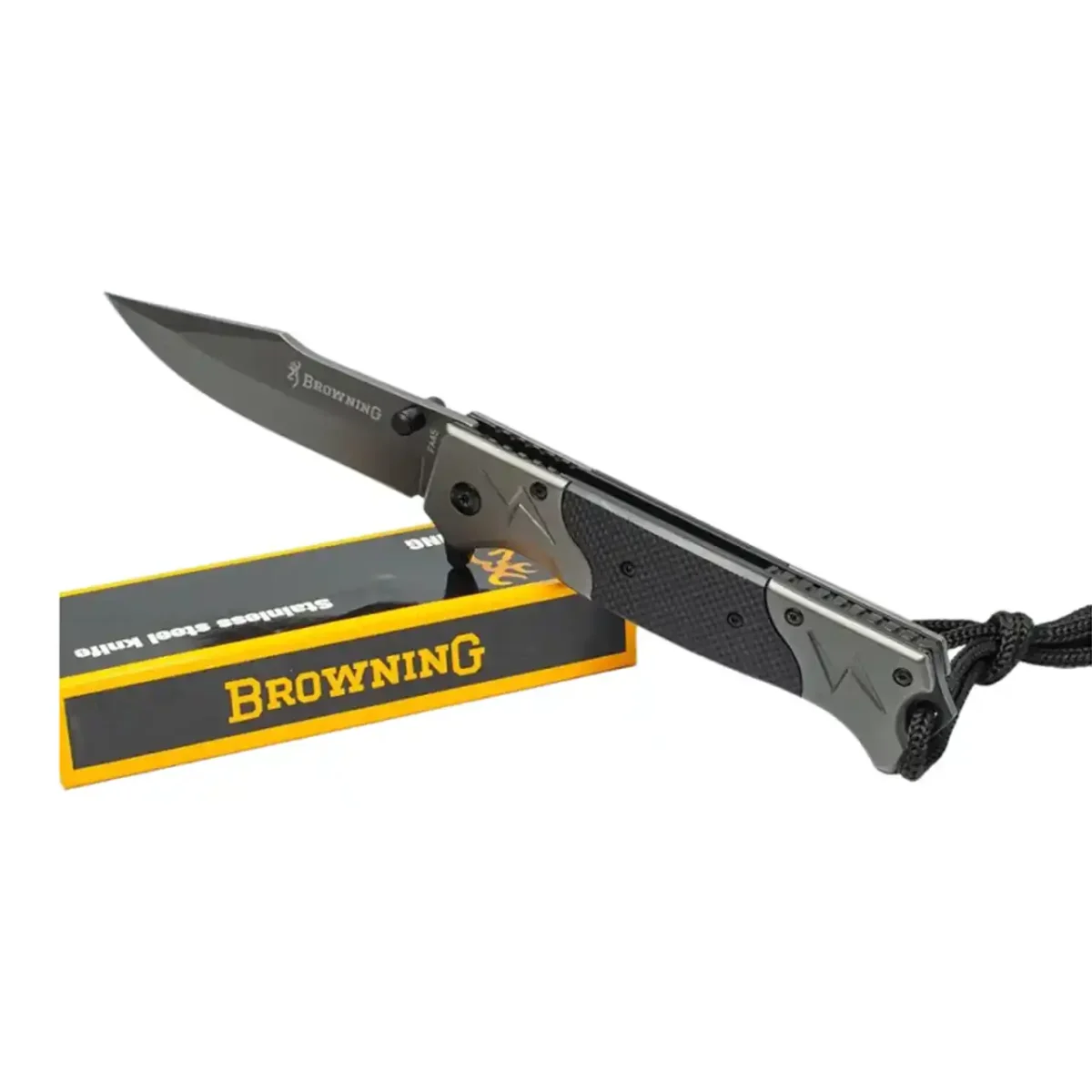 Ніж складний Browning FA45 (SF-2-213). Ножі BROWNING є дуже якісними та зручними ножами! Дана модель має антиковзну рукоятку та шнурок на руку. Передбачено фіксатор для пояса. Досить важкий ніж за рахунок міцного та надійного матеріалу. Запакований у подарункову коробку.