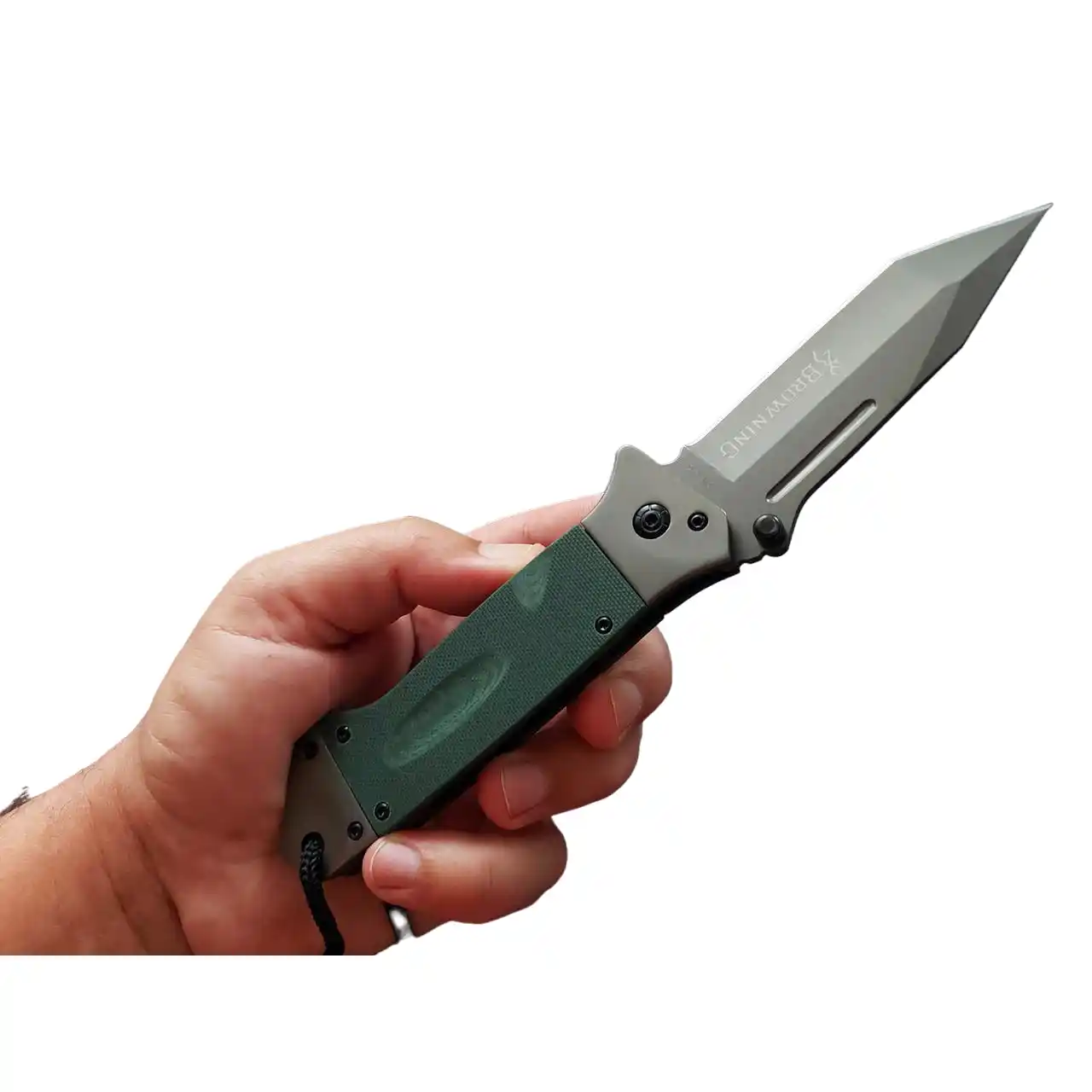 Ніж складний Browning (SF-2-2003) - даний ніж стане незамінним інструментом у будь-яких екстремальних умовах. Колодка виготовлена з текстурованого поліаміду з рифленням для зручного утримання ножа навіть вологими руками. Комбінований клинок виготовлений зі сталі 440C.