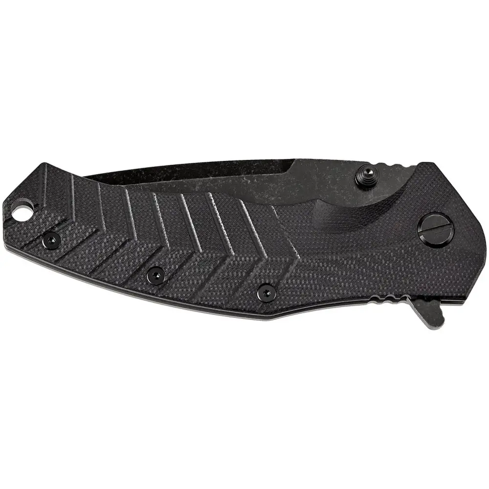 Рукоятка виконана з матеріалу G10, відмінно лежить навіть у вологій руці або рукавичках. Присутня кліпса, яку при необхідності можна зняти та користуватися темляком, під який передбачено отвір.