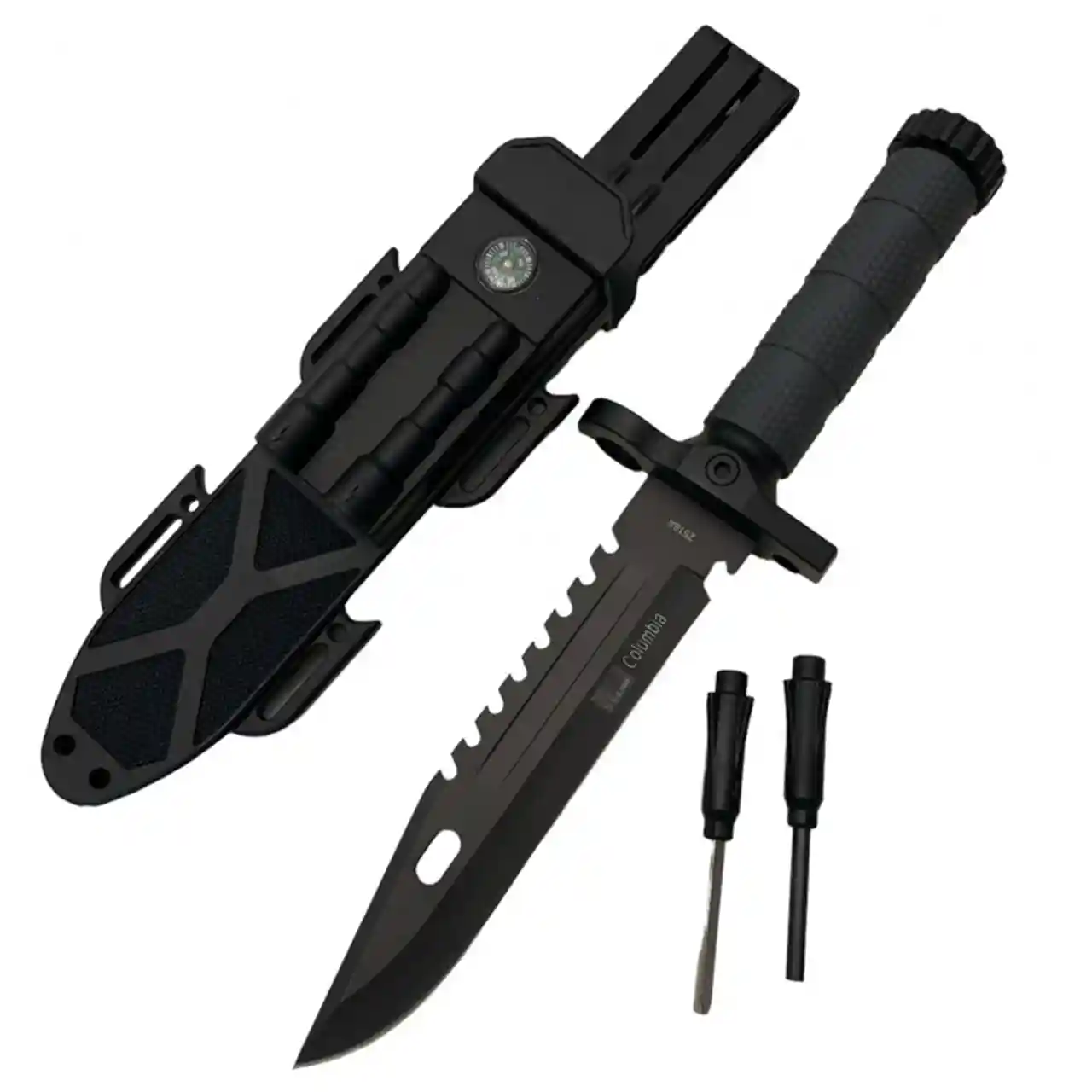 Ніж тактичний Columbia 2518А (SF-2-247) - клинок ножа виконаний з високоякісної нержавіючої сталі 440С, зберігає гостроту протягом тривалого часу та легко заточується в польових умовах. Потужний обух говорить про надійність ножа та витримує великі поперечні навантаження.