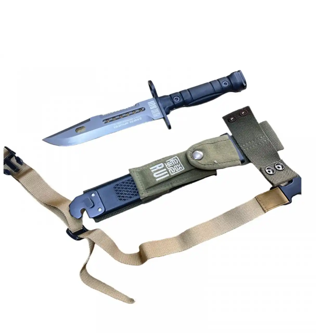 Ніж оснащений механізмом кріплення і дульним кільцем, що дозволяє виконувати також функції бойового багнета.