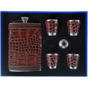 Подарунковий набір 6в1 TZ-51 — класичний і практичний комплект з флягою, 4 чарками та лійкою. Виготовлений з нержавіючої сталі, зі стильним шкіряним оформленням. Чудовий вибір для подарунка чоловікові, подорожей і відпочинку.