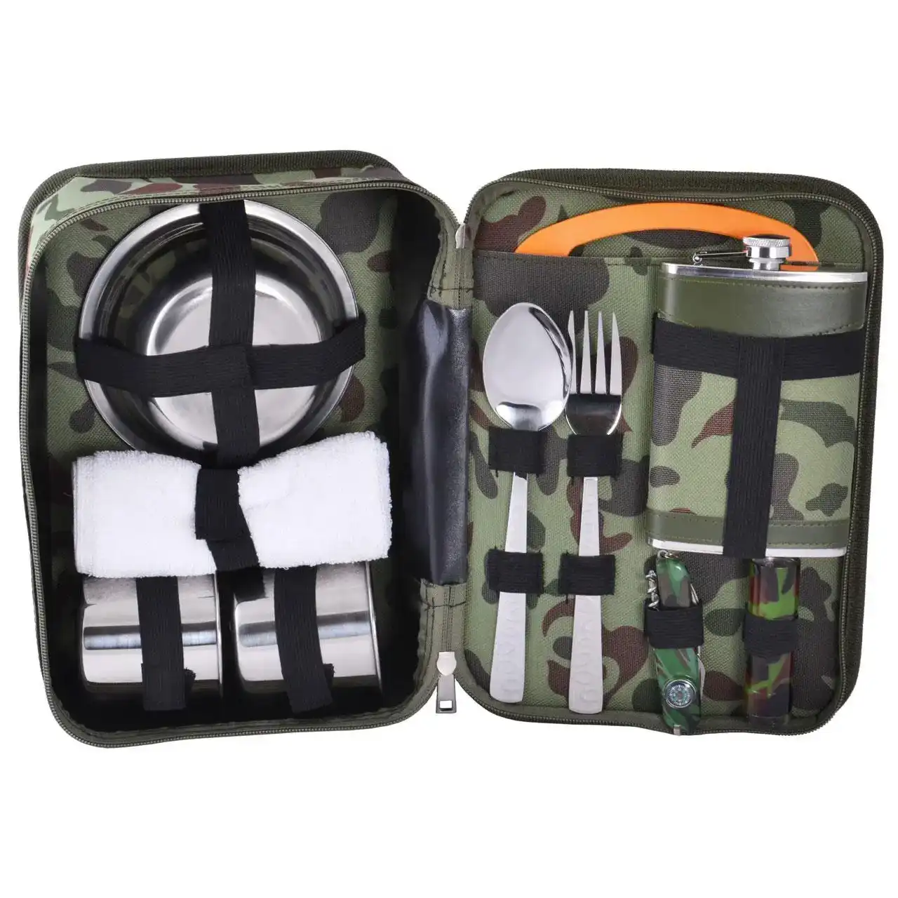Цей набір стане незамінним помічником у поході, на пікніку чи під час риболовлі. Легко поміщається у рюкзаку, забезпечуючи все необхідне для комфортного прийому їжі далеко від цивілізації.