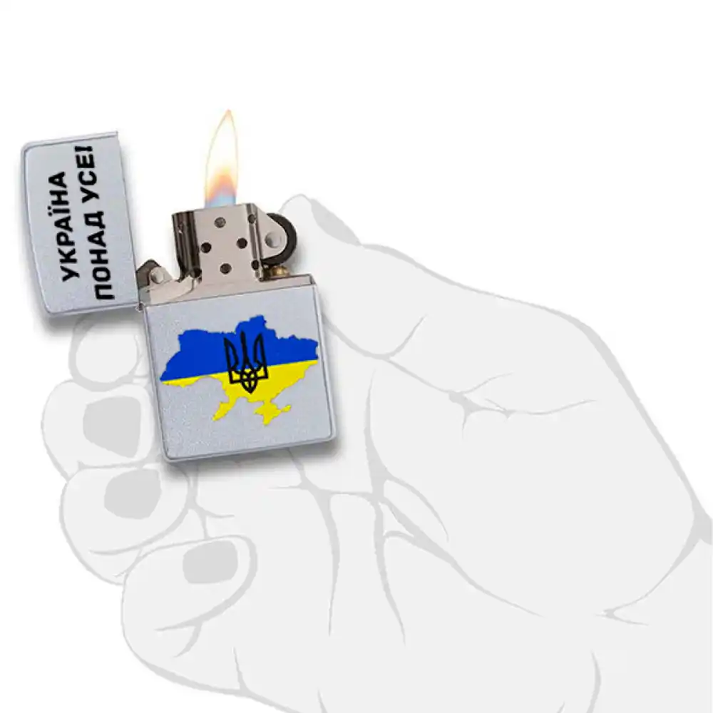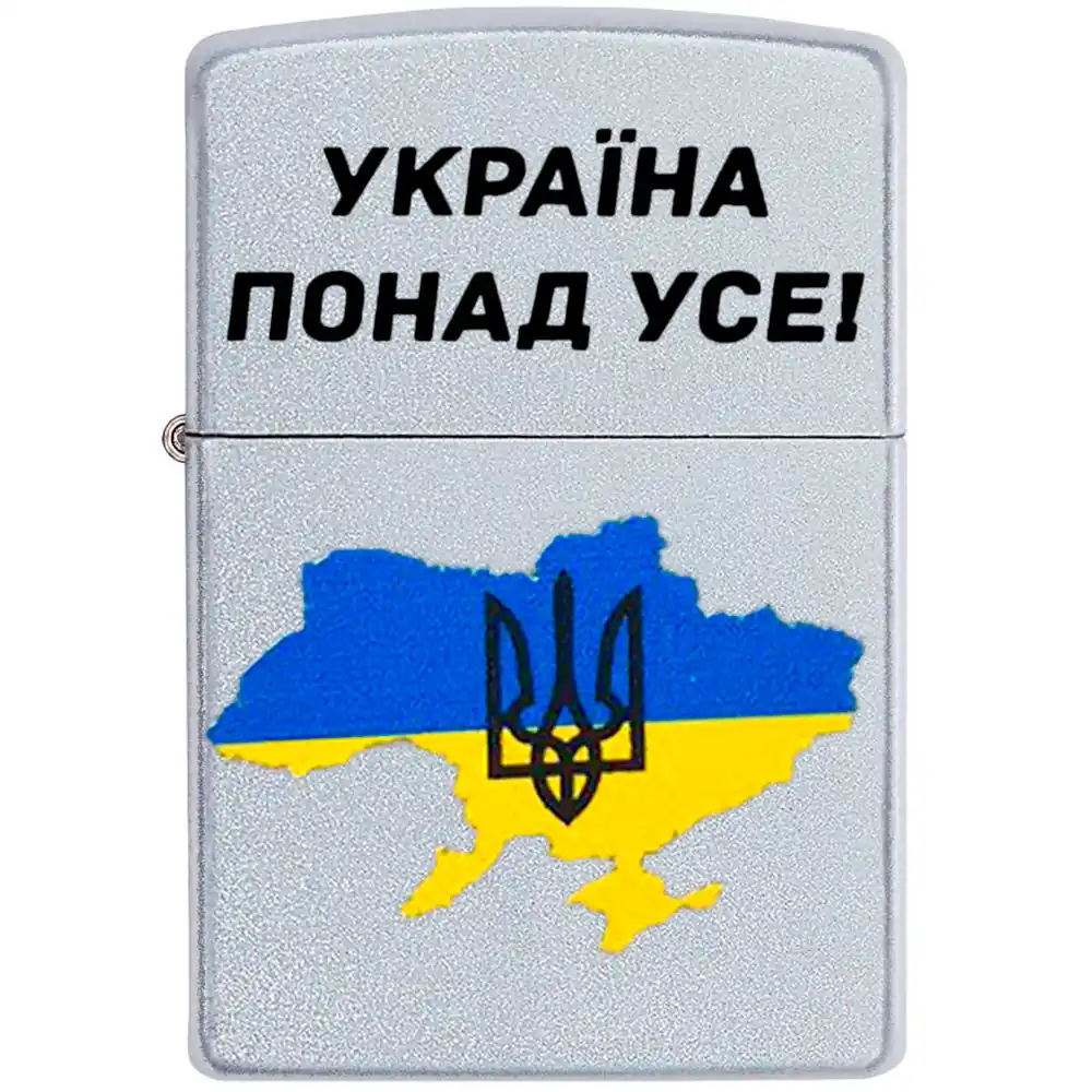 Запальничка бензинова Zippo 205 P Україна понад усе - класична бензинова запальничка Zippo сріблястого кольору. Латунний корпус запальнички має матове, приємне на ощупь, хромоване покриття оброблене за технологією лощення (лощення). Класичні моделі запальничок ZIPPO – це моделі, які компанія випускає рік у рік практично без змін. Вони не схильні до години, і навіть через багато років (а справжні ZIPPO служать багато десятиліть) залишаються актуальними, як і в день покупки.
