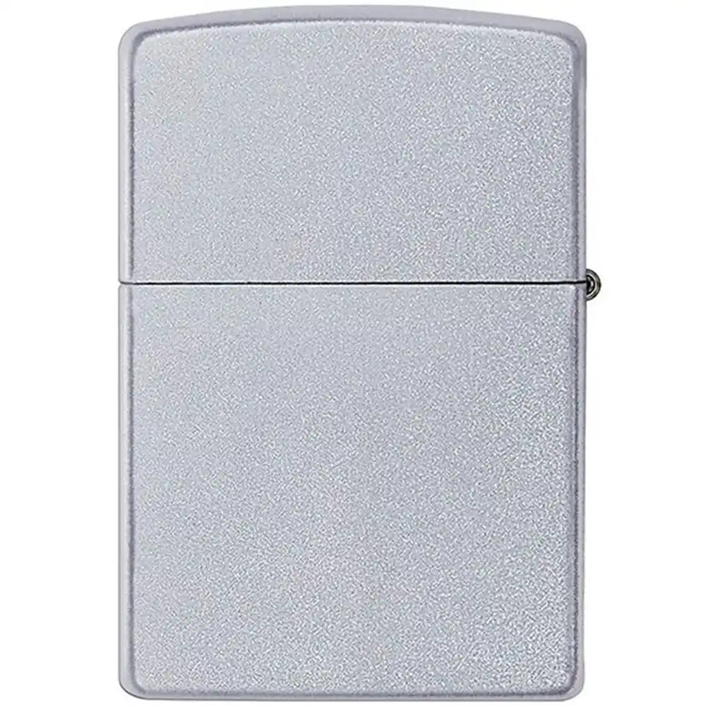 Класична бензинова запальничка Zippo 205 Satin Chrome. Металевий корпус має матове, приємне на дотик, хромоване покриття оброблене за технологією лощіння (лощіння) - завдяки чому на корпусі не залишається слідів від пальців. Запальничка Zippo упакована у фірмову подарункову коробочку з логотипом Zippo.