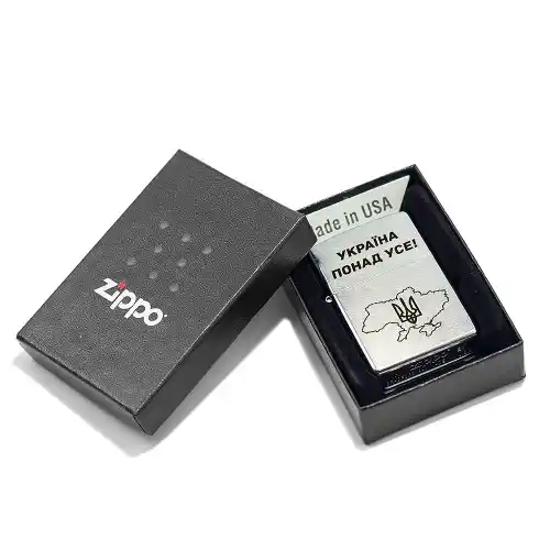 Запальничка бензинова Zippo 207 P Україна понад усе - класична запальничка з покриттям STREET CHROME. Ексклюзивне гравіювання нанесено в Україні на модель Zippo 207 офіційним представництвом Zippo Україна.