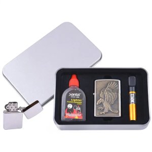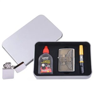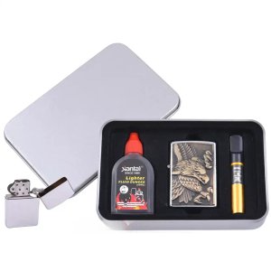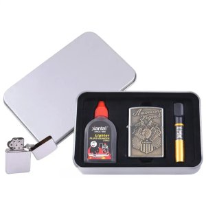 Подарункова коробка надає набору презентабельного вигляду — ідеальний варіант як подарунок, так і для особистого користування. Багаторазова конструкція дозволяє заправляти запальничку за потреби та користуватися нею довгий час.