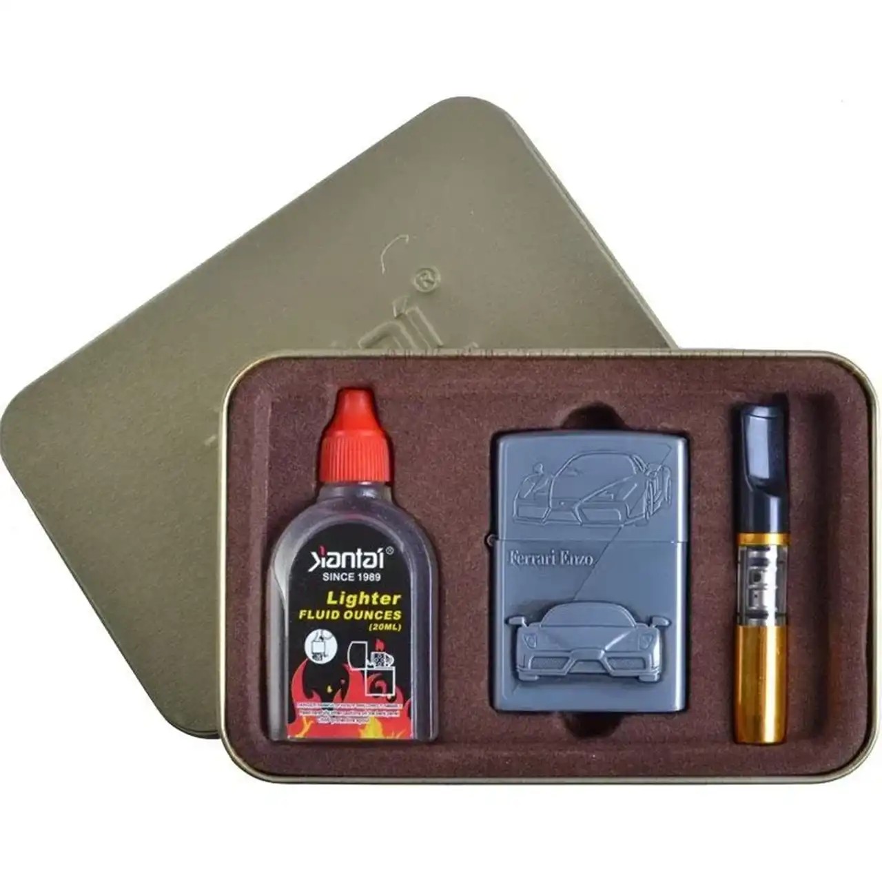 Бензинова запальничка 4715 — це стильний та практичний подарунковий набір 3в1, який поєднує класичну бензинову запальничку та необхідні аксесуари. Ідеальний варіант для подарунка або особистого користування.