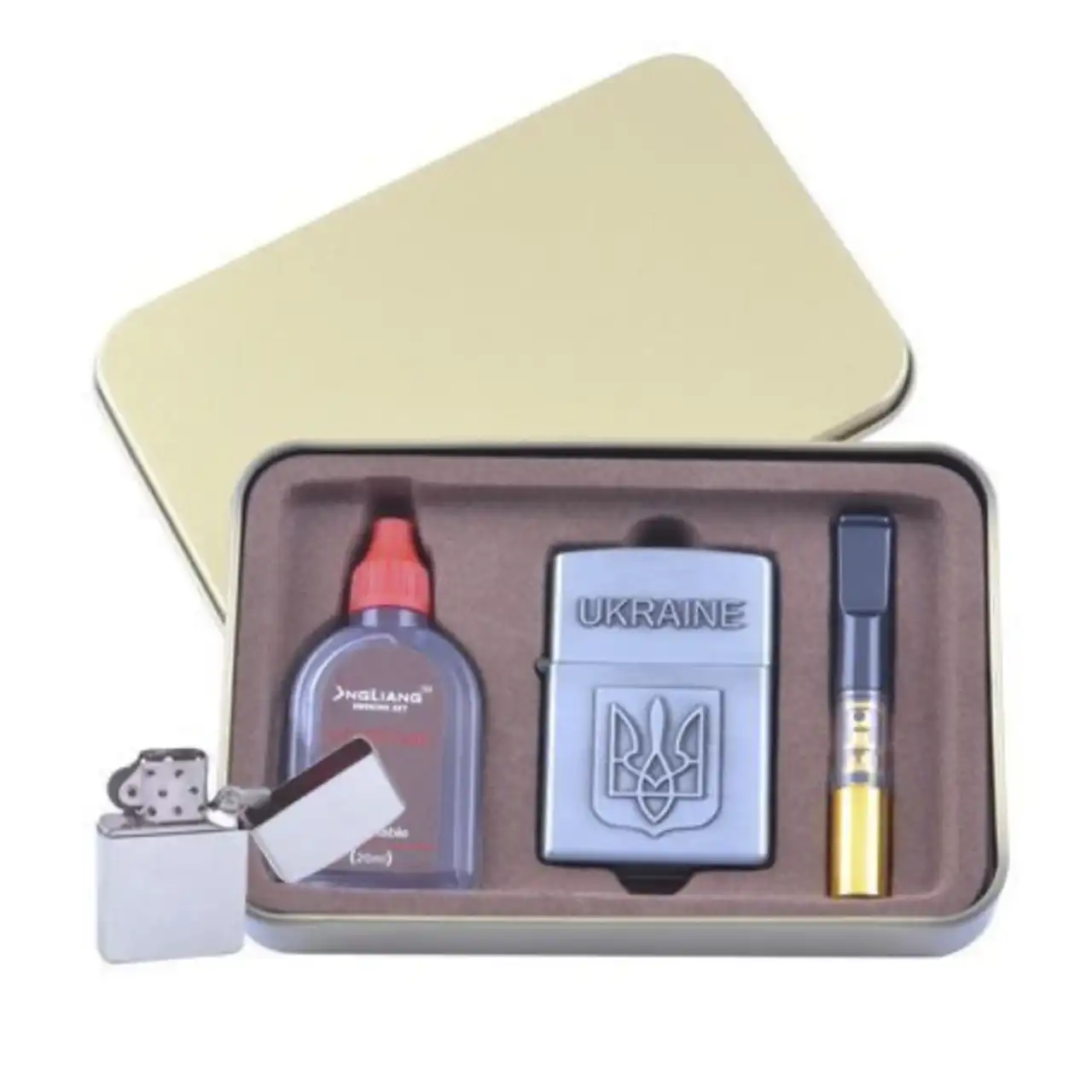 У комплект входить балончик очищеного бензину для першої заправки та мундштук, що робить набір повністю готовим до використання. Завдяки компактним розмірам і стильній упаковці запальничка стане чудовим подарунком.