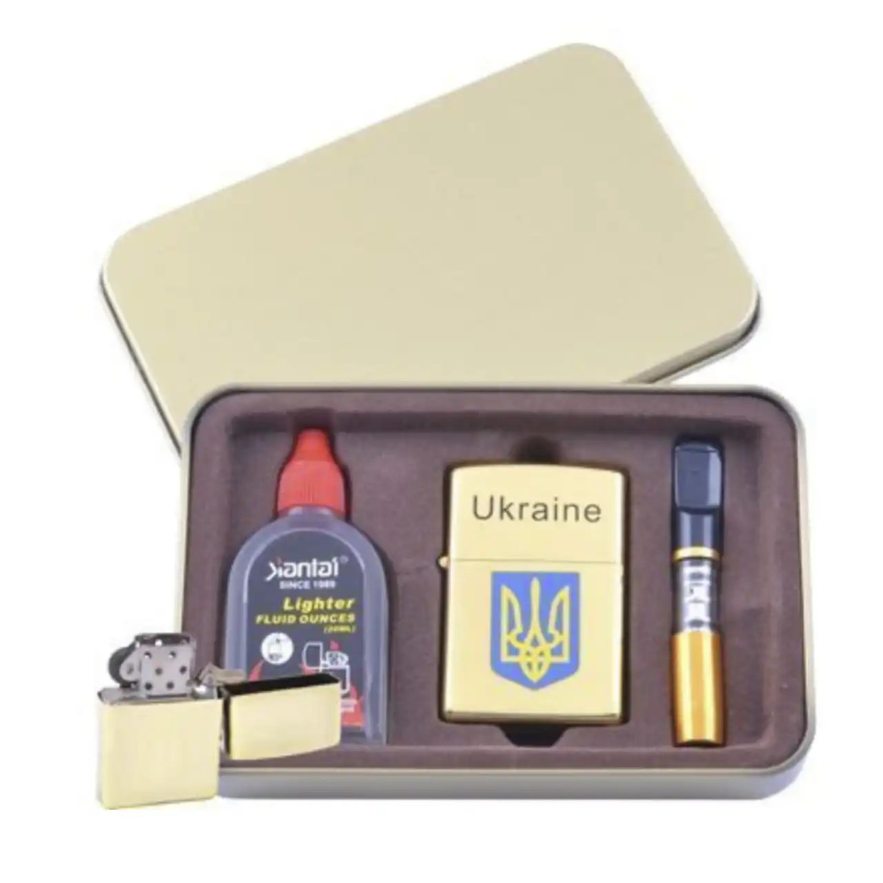 Комплект містить балончик бензину для першої заправки та мундштук, що додає зручності під час використання. Подарункова коробка робить набір чудовим вибором для подарунку або колекції.