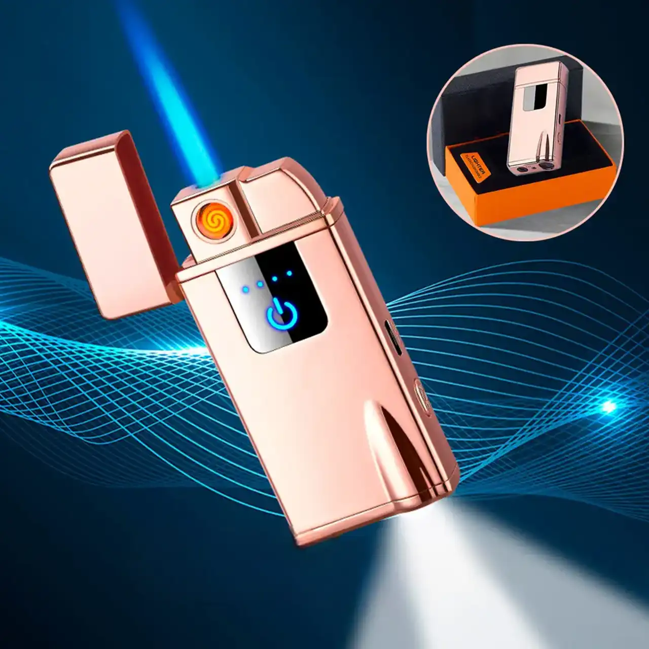 USB-запальничка 33642Gold з турбо-форсункою, ліхтариком та сенсорним увімкненням. Зарядка через USB, подарункова коробка, зручна для дому та вулиці.