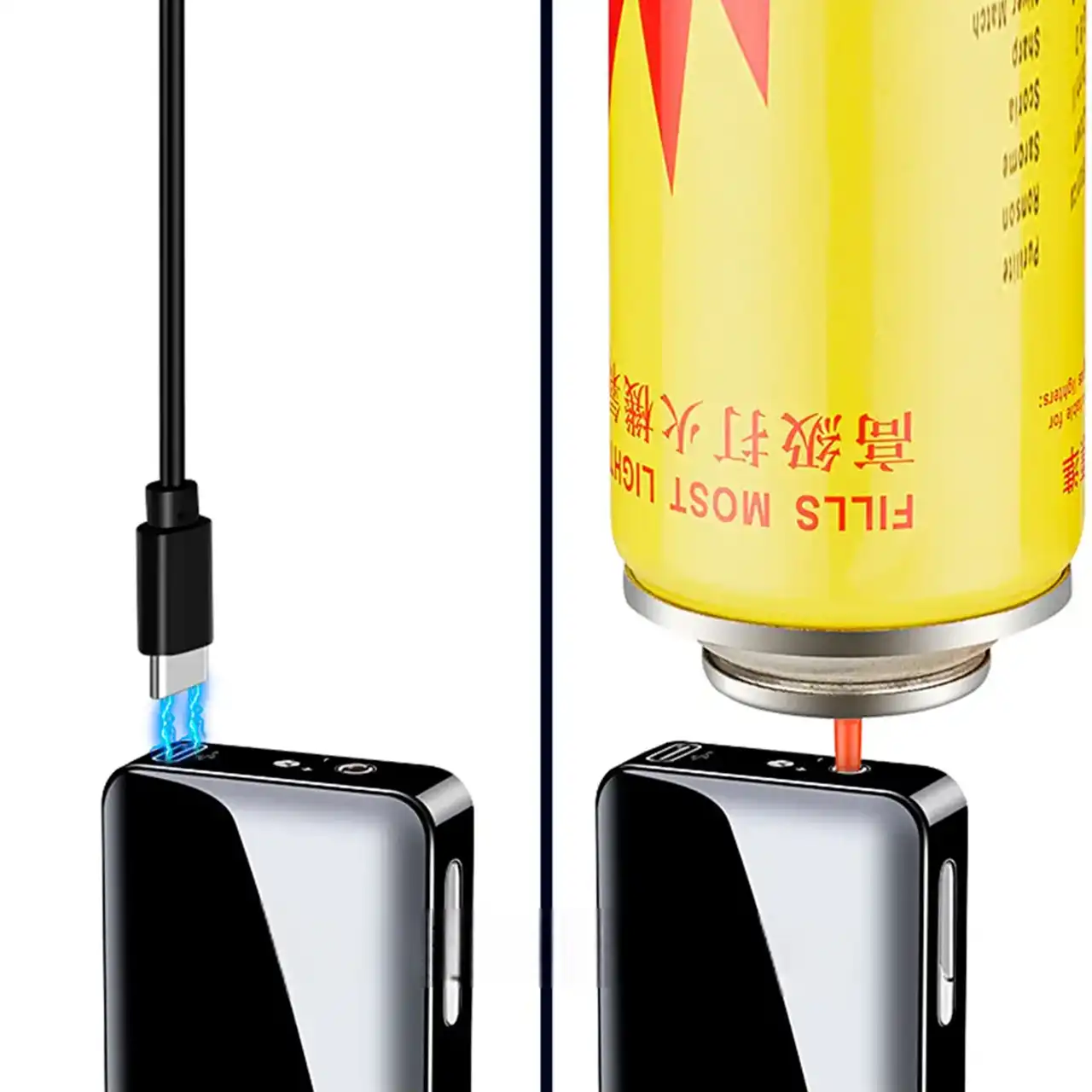 Корпус виконаний із високоякісного металу, що гарантує довговічність і приємну вагу в руці. Перезарядка через USB робить пристрій економним і зручним у використанні — не потребує газу або бензину.