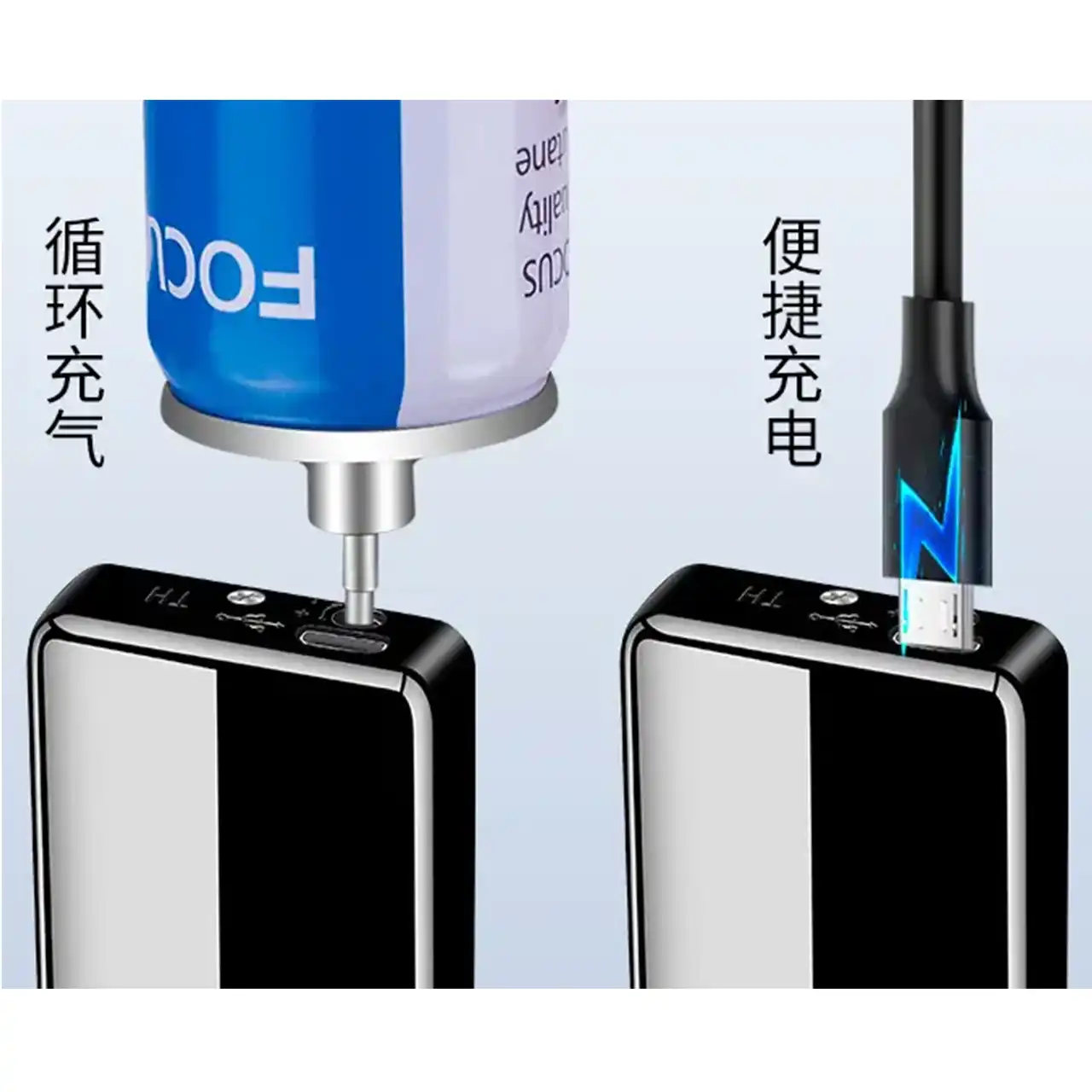 Вбудований акумулятор на 1000 mAh заряджається через USB та забезпечує десятки використань на одному заряді. Індикатор заряду дозволяє контролювати рівень енергії, щоб завжди бути готовим до використання. Компактні розміри (84 × 38 × 15 мм) і подарункова коробка роблять її ідеальним подарунком або зручним аксесуаром для щоденного користування.