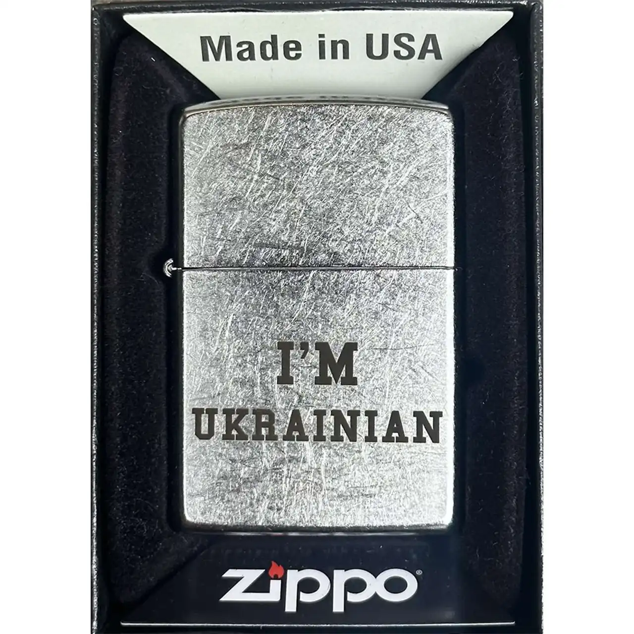 Її корпус виконаний із міцного металу, покритого матовим хромом, що надає запальничці стриманого блиску та стійкості до подряпин. На лицьовій стороні нанесено патріотичний напис “I am Ukrainian”, який підкреслює гордість за Україну.