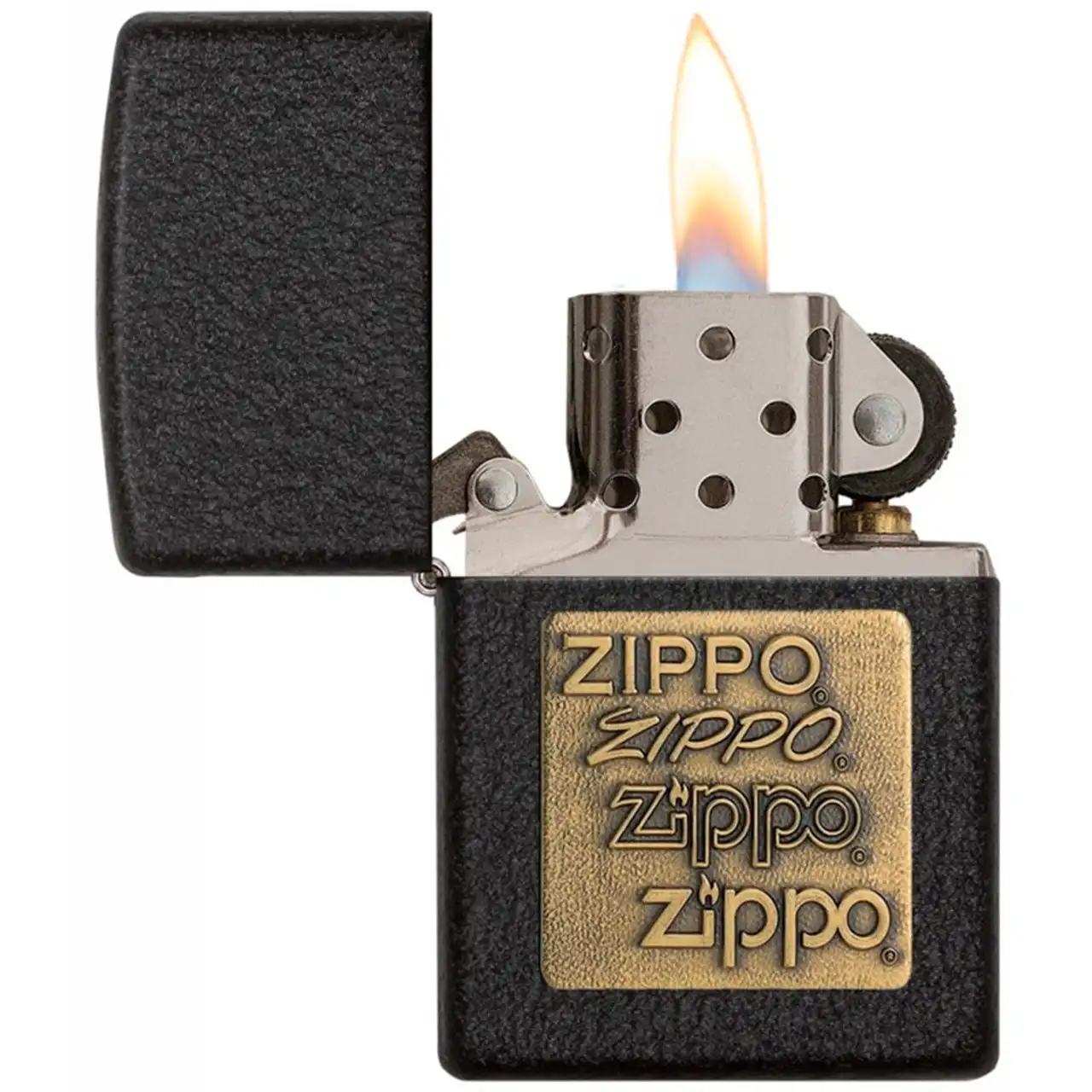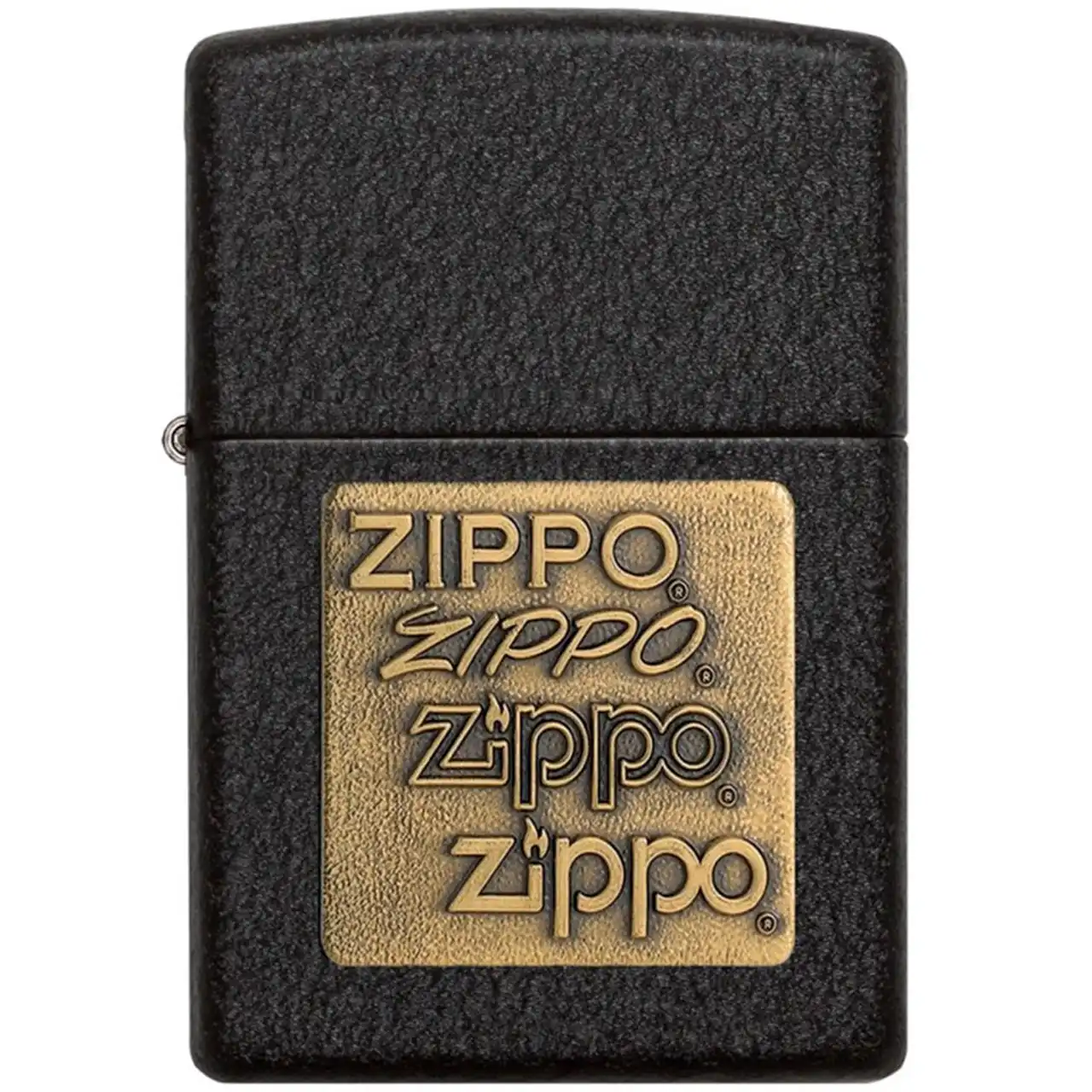 На лицьовій стороні розміщена латунна емблема з логотипом Zippo, яка гармонійно контрастує з чорним корпусом, підкреслюючи вишуканість і преміальний стиль.